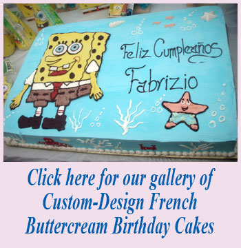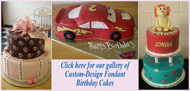 We specialize in creating custom cakes modeled after your child's favorite hobby, cartoon character, movie or TV show. We also offer traditional cakes of all shapes and sizes.